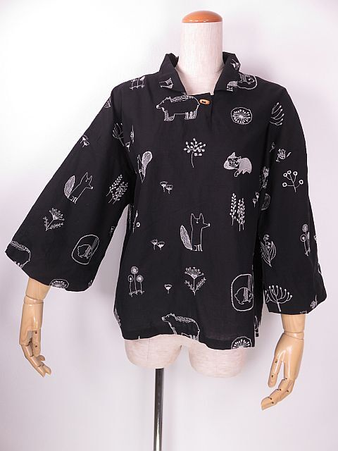 - 【送料無料】美品 Emago イマゴ 長袖カットソー アニマル刺繍 黒 M相当