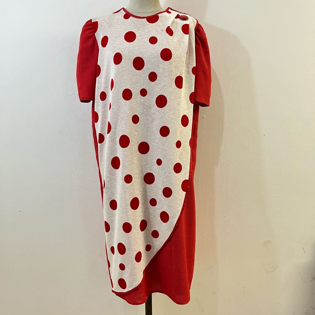 - 伊太利屋 ロングワンピース 総柄ワンピース 水玉柄 半袖 デザインワンピース 日本製 上質 希少 イタリヤ GKITALIYA【送料一律/同梱可能】A