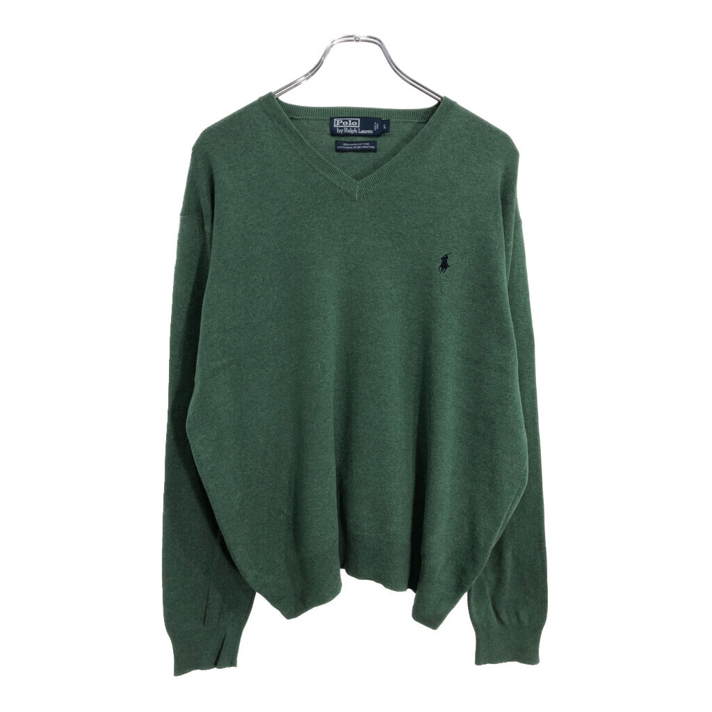 - Polo by Ralph Lauren ポロ ラルフローレン ハイゲージ Vネック コットンニットセーター グリーン(メンズ L)中古 古着 U5973