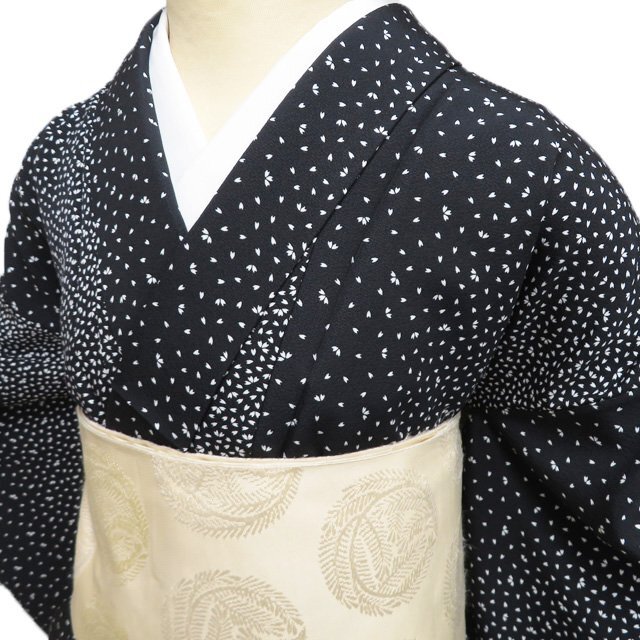 > 小紋 着物 中古 正絹 袷 カジュアル 花模様 桜散らし 黒色 身丈153cm 裄64cm SA きもの北條 A1220-4