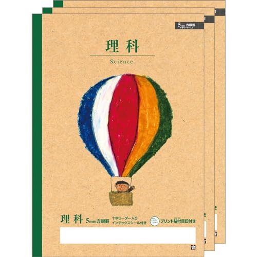 - サクラクレパス 学習帳 理科 5mm方眼 十字リーダー入り A4 米津祐介 デザイン 気球 3冊 NP942(3)