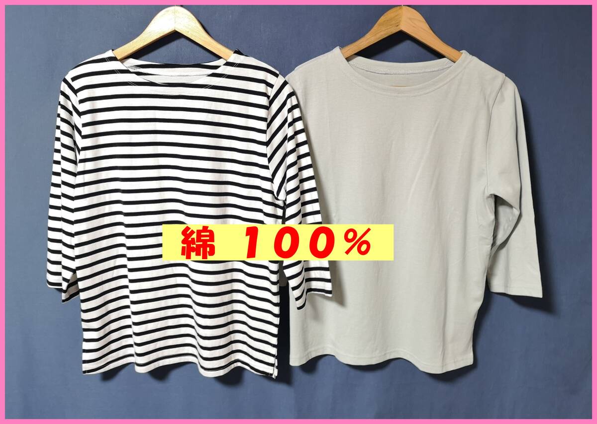 > TSET‐646☆春夏秋☆新品☆送料込み☆即決☆綿Tシャツ素材☆2枚セット☆M~Lサイズ☆Tシャツ☆ボーダー柄とライトグリーン系