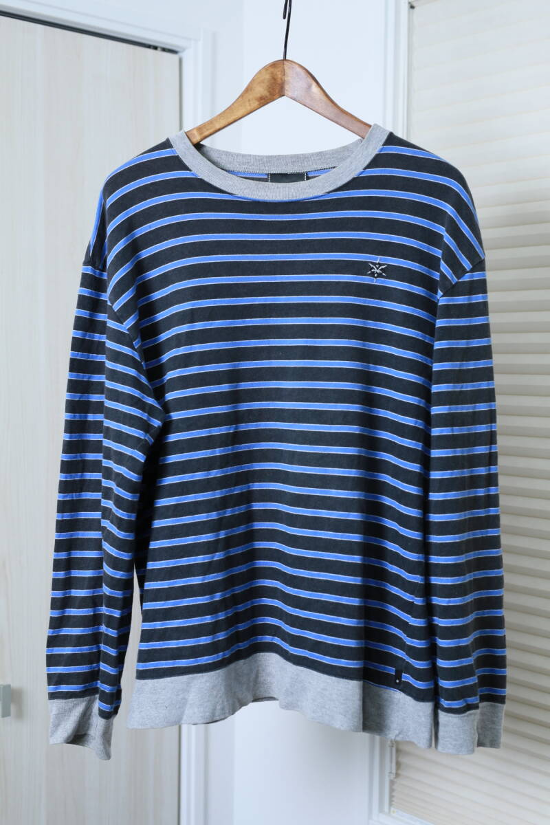 日本製COOTIE クーティー ワンポイント刺繍入りボーダー柄長袖Tシャツ