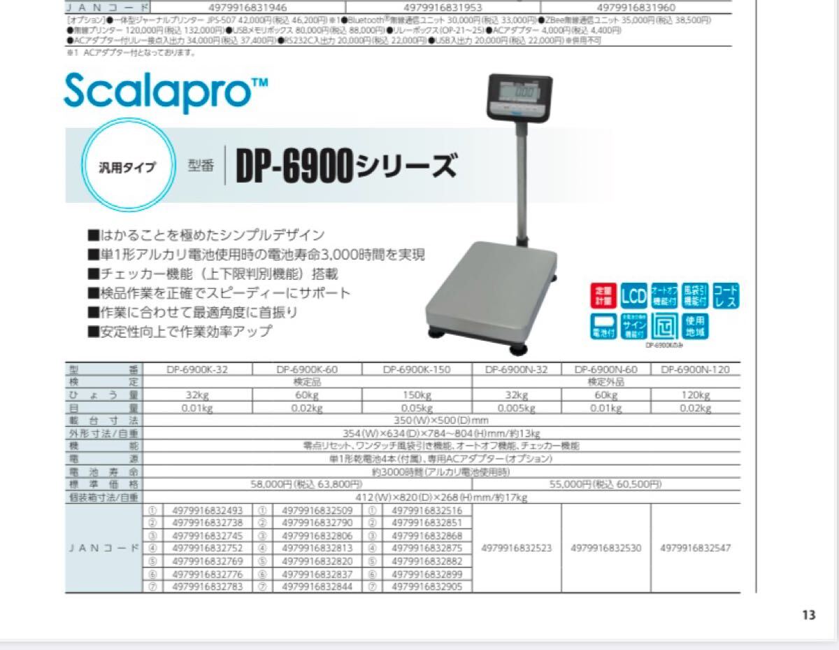 - Yamato株式会社防水型デジタル台はかりDP-6900シリーズ