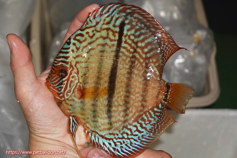 【ディスカス】【通販】ロイヤルブルーヘッケルクロス(ハイフォーム)【個体販売】15-17cm(生体)