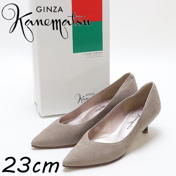 > ◆銀座かねまつ AQUA BELL スエード ポインテッドトゥ ヒール パンプス グレージュ 23cm