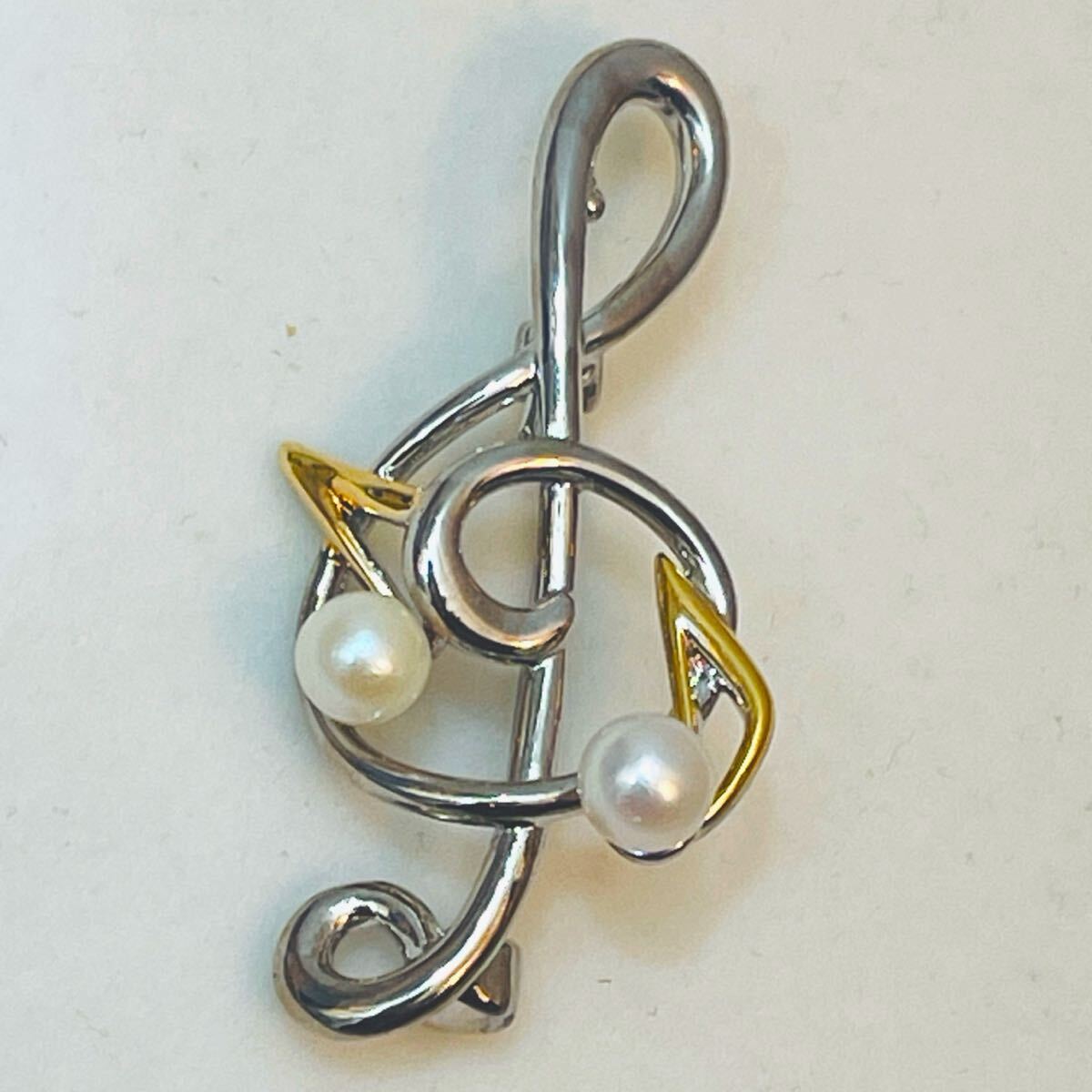 - 花珠級 あこや真珠 本真珠 ブローチ パール ペンダント トップ 兼用5-6mm 音楽 アクセサリー