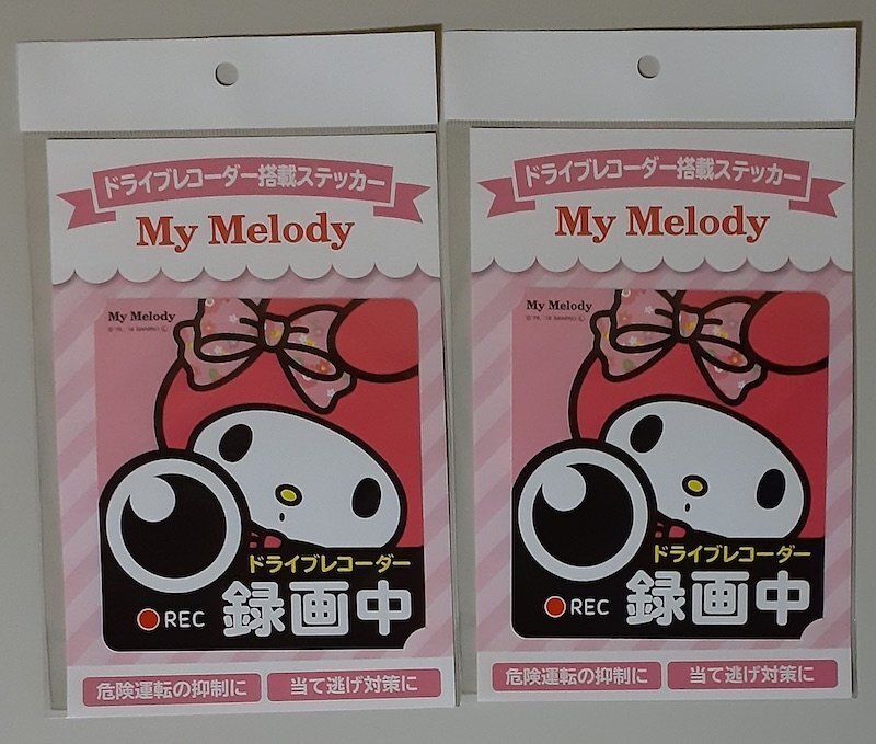 - 6006 未使用 VTS-DRS02MM ステッカー サンリオ My Melody ドライブレコーダー録画中 2枚セット REC 危険運転の抑制に 当て逃げ対策に