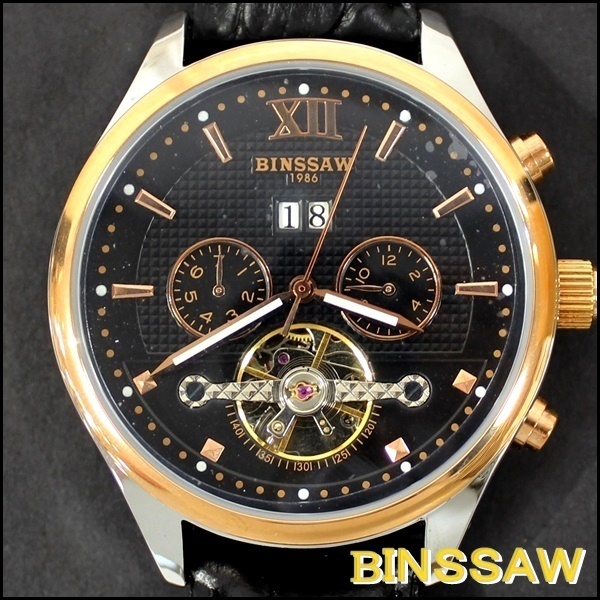 - 【未使用保管品】トゥールビヨン Binssaw 自動巻 レザー スケルトン (黒文字盤)