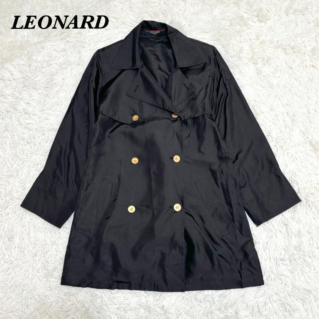 - レオナール シルク スプリングコート 9R 襟裏ヒョウ柄 ブラック