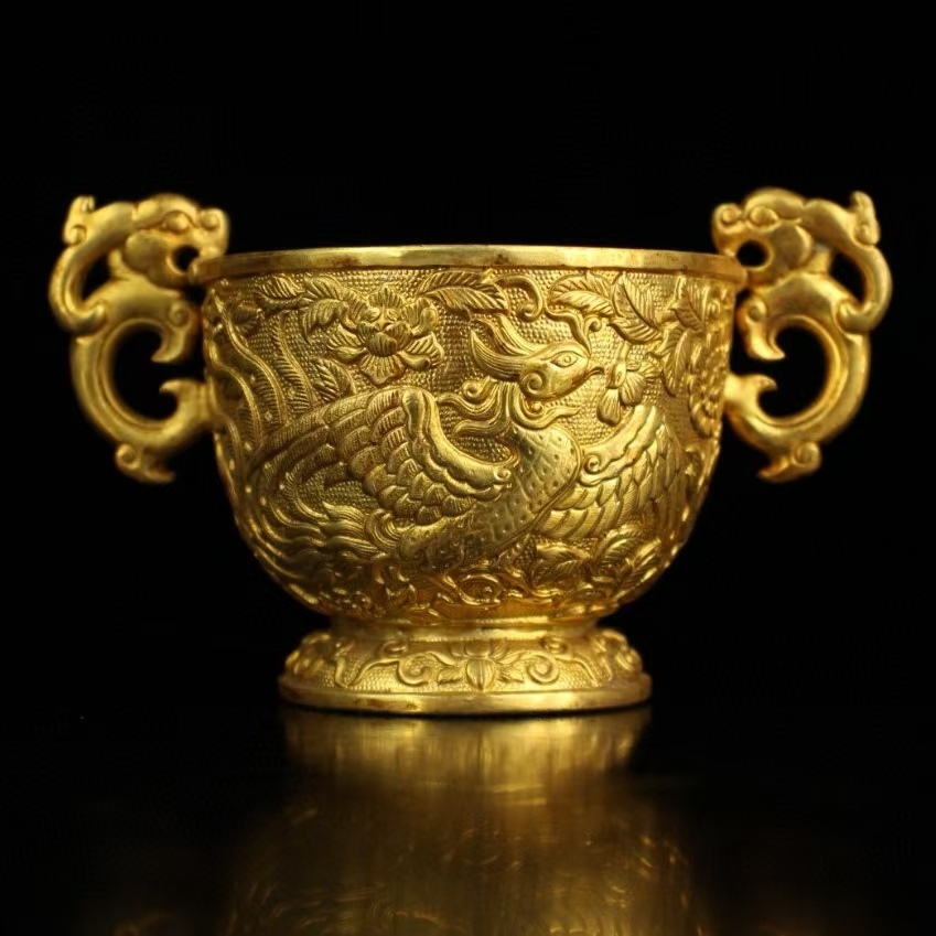 - 清代 酒器 旧蔵 チベット古寺 皇室御蔵古銅金龍鳳盃 銅製 銅琉金 唐物 收蔵品 時代物 古美術 古置物 希少珍品 供養品 文房具 仏教6.26
