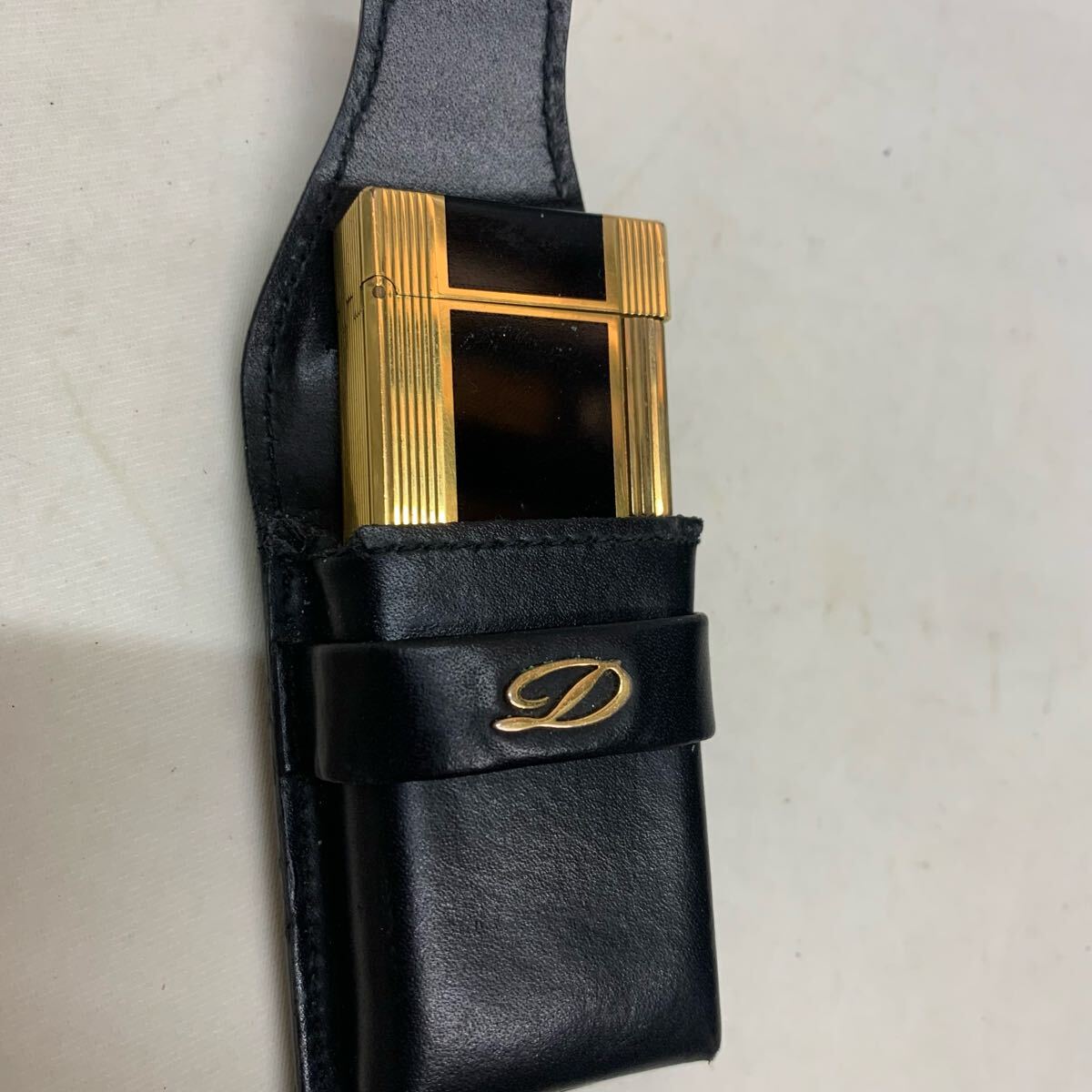 > 【美品】デュポン S.T.Dupont ライン1L ロング ローラーガスライター ピンクゴールド ブラック 漆 レザーケース付き 火花確認
