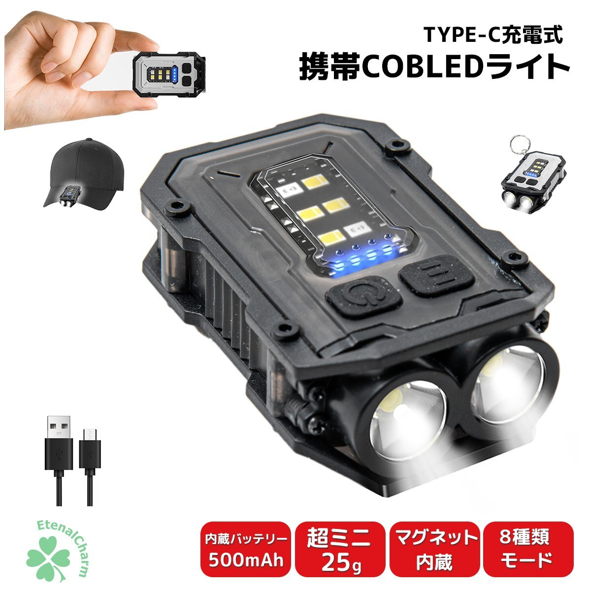 - 懐中電灯 LED ミニライト 8種類点灯モード コンパクト 作業灯 防水 TYPE-C充電 アウトドア クリップ/マグネット付 2色選択 クリックポスト