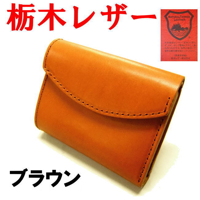 - ブラウン 栃木レザー 姫路レザー 財布 三折 ミニウォレット 285 茶 本革
