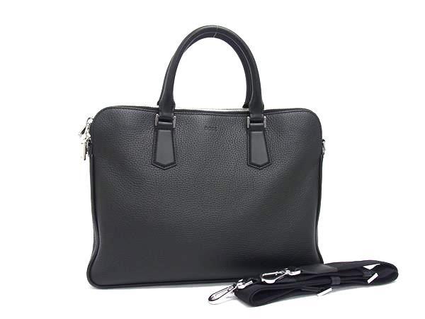 - ■新品同様■ HUGO BOSS ヒューゴボス レザー 2WAY ビジネスバッグ ブリーフケース ショルダー 肩掛け メンズ ブラック系 FG9346