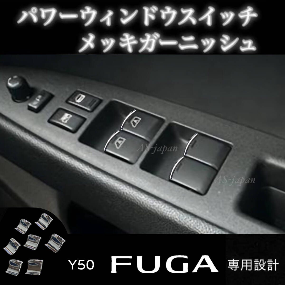 - Y50 フーガ パワーウインドウ スイッチ メッキ装飾カバー スイッチ ガーニッシュ 内装 カスタム ドレスアップ パーツ メッキ モール トリム