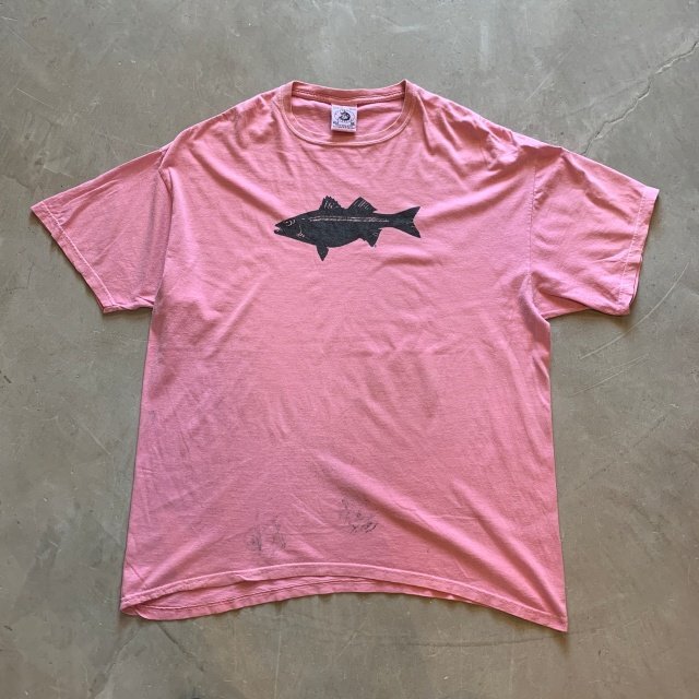 - 【XL】THE BLACK BASS ブラックバス プリントTシャツ ピンク■ビンテージ オールド アメリカ古着 魚 ブラックドッグ パロディ