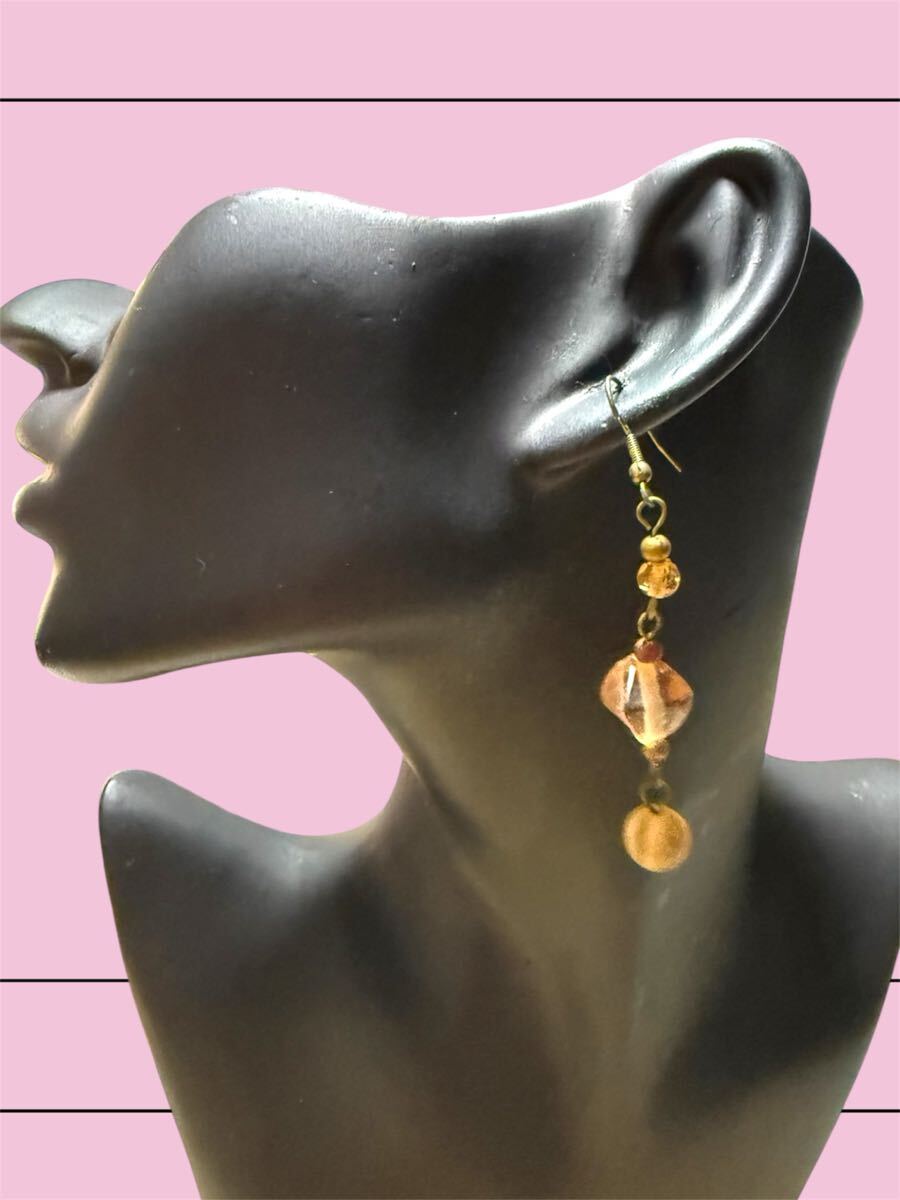 - 【H&M】オレンジ系ビーズのロングピアス♪