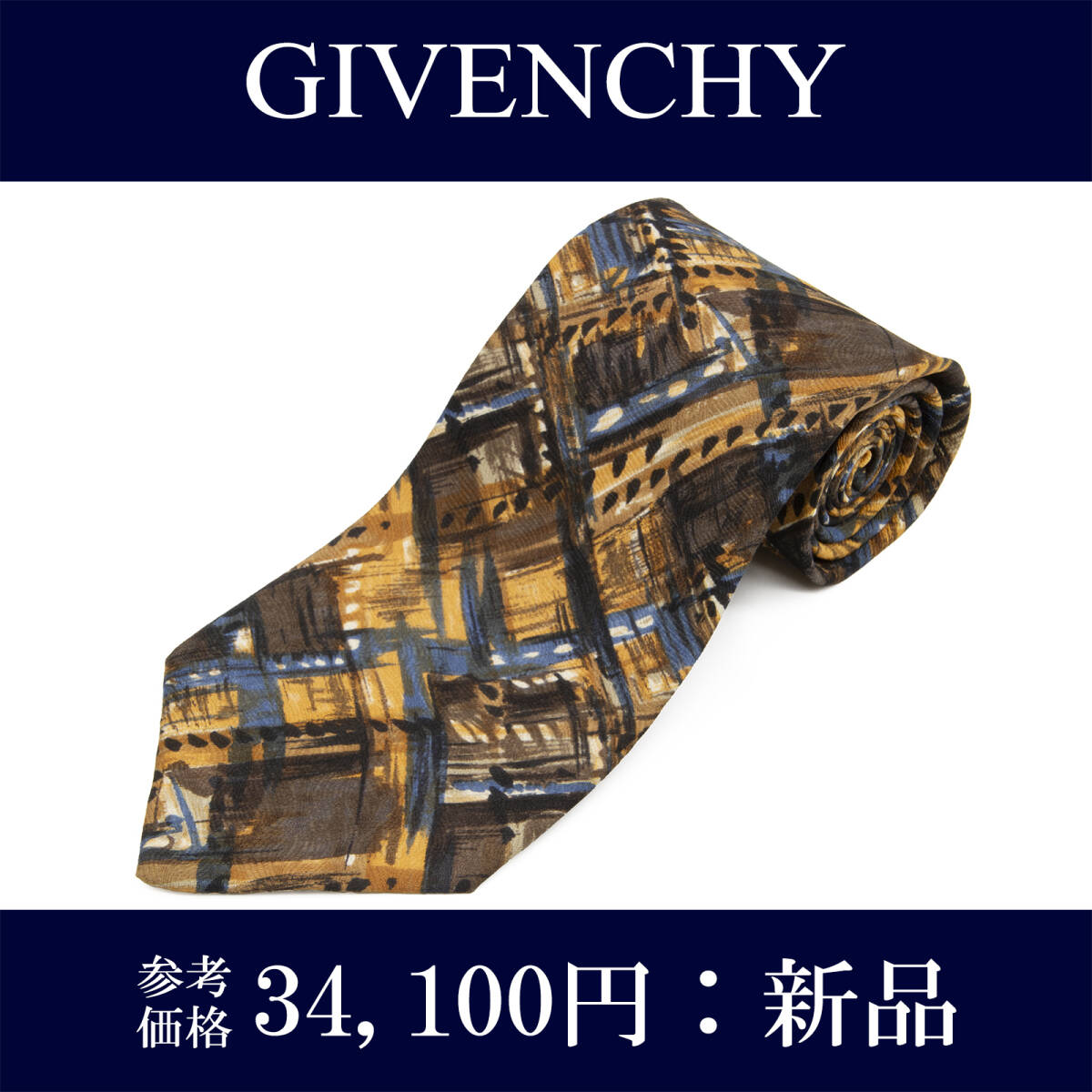 > 送料無料 ジバンシー ネクタイ ジャガード 新品 シルク 黄土色 茶色 ブラウン 青 白 ビジネス カジュアル ブランド イタリア製 綺麗 P143