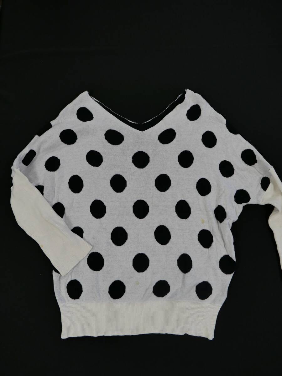 - antiqua アンティカ セーター ニット ドット 白黒 古着 USED レディーストップス F シンプル 普段使い