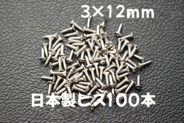 > 100本 日本製 ピックガード バックパネル ビス ギター ベース ネジ 3mmx12mm ニッケル