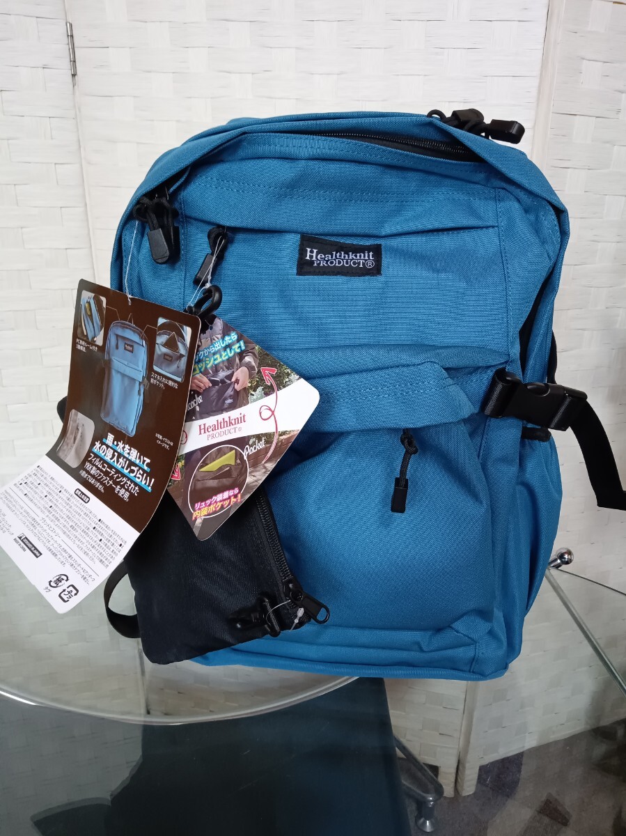 > 新品タグ付き Healthknit PRODUCT 3層多収納リュック 大容量 PC専用ポケットブルー 高耐水 ヘルスニット プロダクト サコッシュ付き