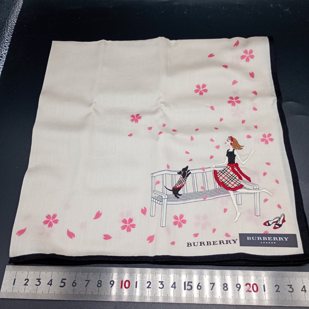 - BURBERRY バーバリー ハンカチ ベージュ さくら ダックスフント 女の人(刺繍) no.3021