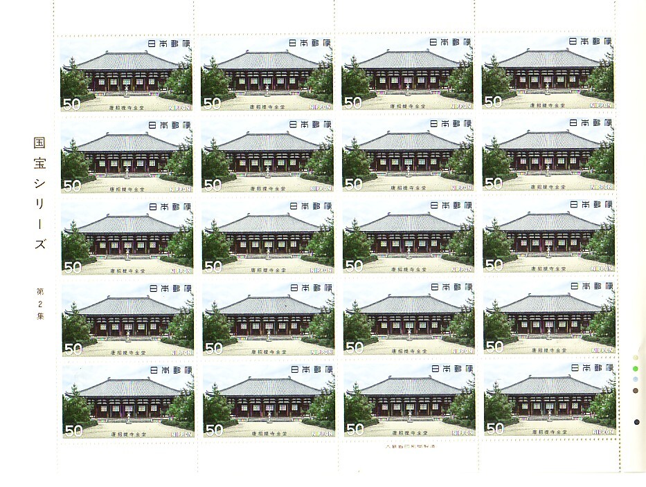 - 「国宝シリーズ 第2集 唐招提寺金堂」の記念切手です