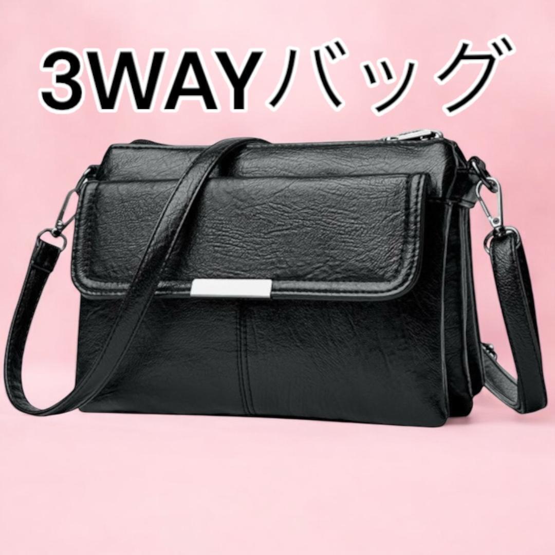 > ハンドバッグ 3way ショルダーバッグ クラッチバッグ レディースバック 大容量 斜め掛け 肩掛け ショルダー 黒色 新品 送料無料 最短発送