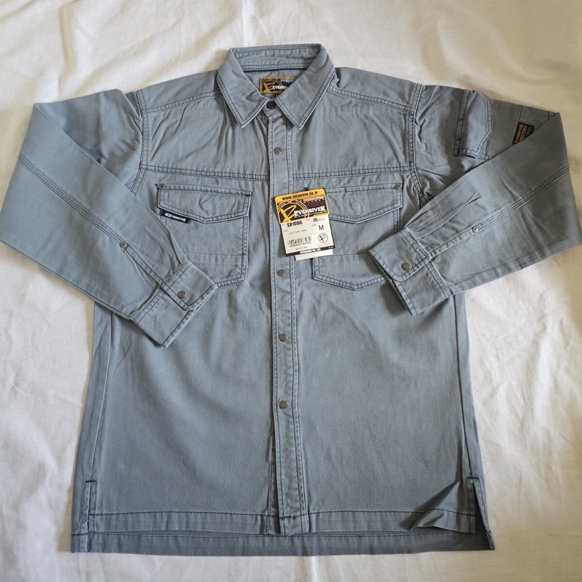 - EVENRIVER ワークシャツ SR1006 綿100% サイズM ブルー系 作業服 イーブンリバー ワークウェア