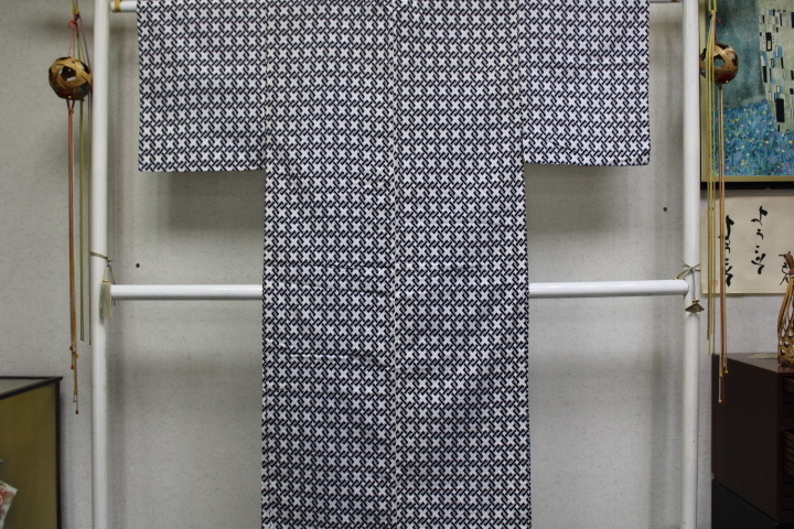 - きもの今昔8705 おとこの和服 夏のきもの 綿100%コーマ糸本染ゆかた 白地に伝統模様の柄 身丈154cm