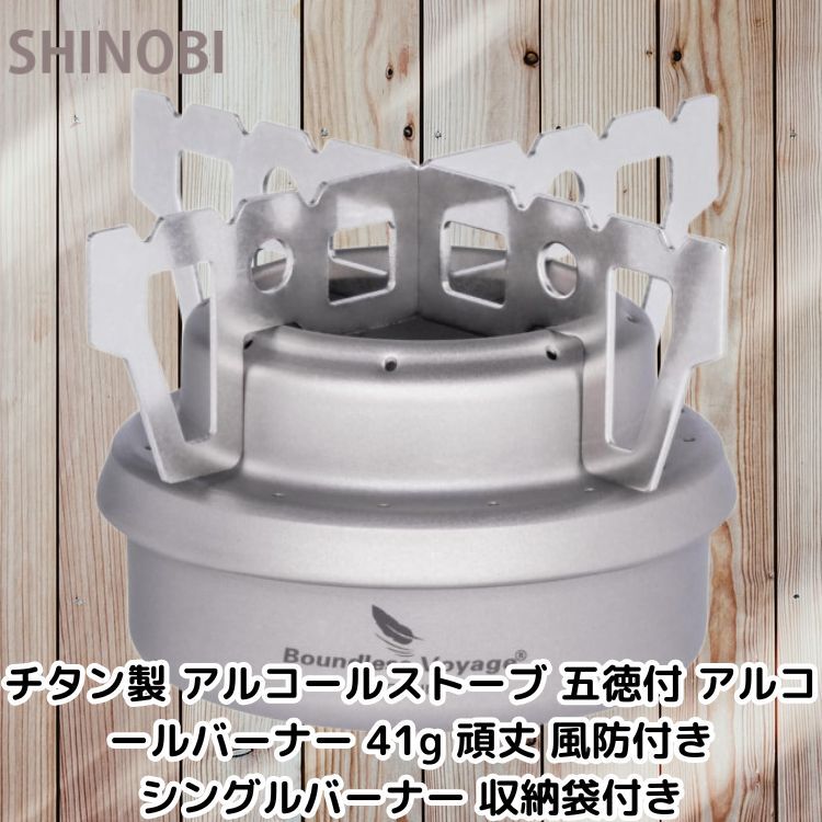 - チタン製 アルコールストーブ 五徳付 アルコールバーナー コンパクト アルコールストーブ 風防 シングルバーナー アウトドア キャンプ