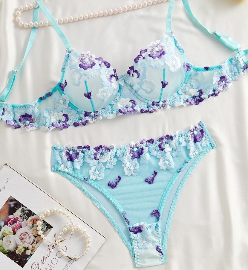 > 279 ブラジャーセットladiesレディース ◇ 魅惑Styleセクシー ◇ 上質 刺繍 水色