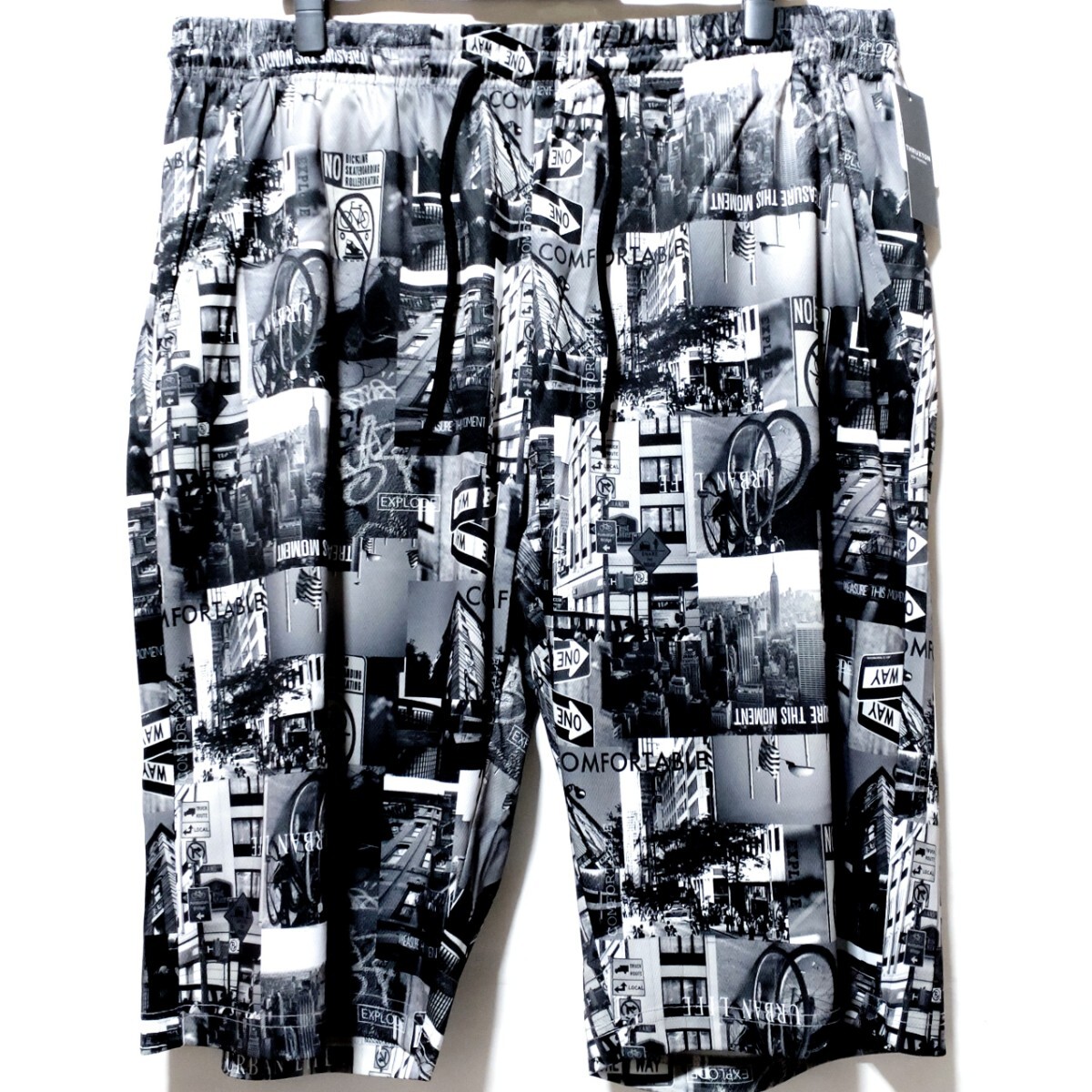 > 特価/未使用【サイズ=5L(4XL)】ノーブランド/フォトプリント柄/メンズ/左右ポケット付き/ジャージ/ハーフパンツ/胴囲=112~122cm/black柄