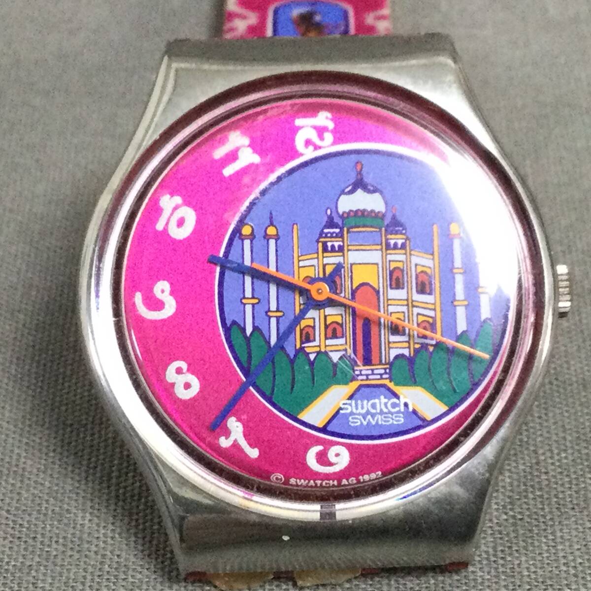 - 577/3 GJ71333 swatch スウォッチ 稼動 ピンク 模様あり ラバーベルト ケース付 レディース 腕時計