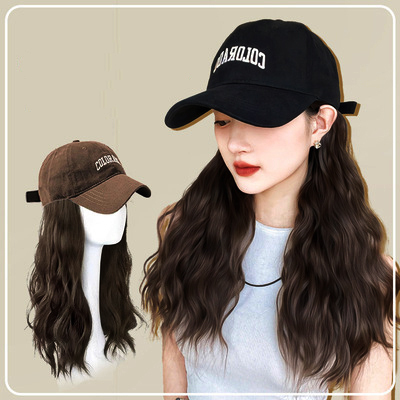 - 【新品!未使用!】ブラック / 刺繍 アルファベット キャップ付ウイッグ ブラウン ロング かつら
