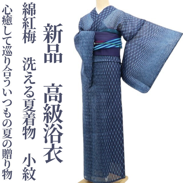 - tomihisa 新品 綿紅梅 洗える夏着物“浴衣と着物で得した気分!心癒して巡り合ういつもの夏の贈り物”仕付け糸付 小紋 高級浴衣 6195