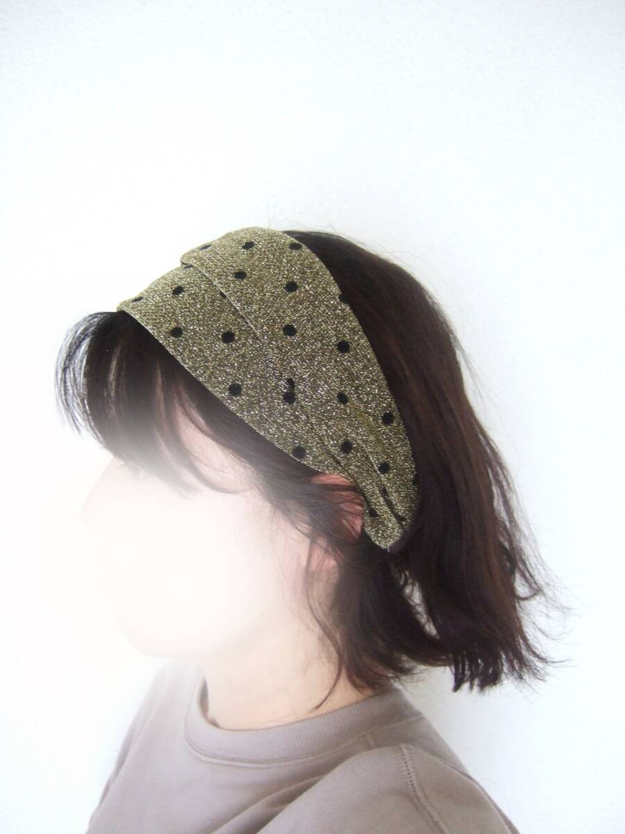 - 即決★ハンドメイド 特別な日に★ラメがきれいな 金*黒ドットラメニット ゆるターバン** 夜の光に映えます