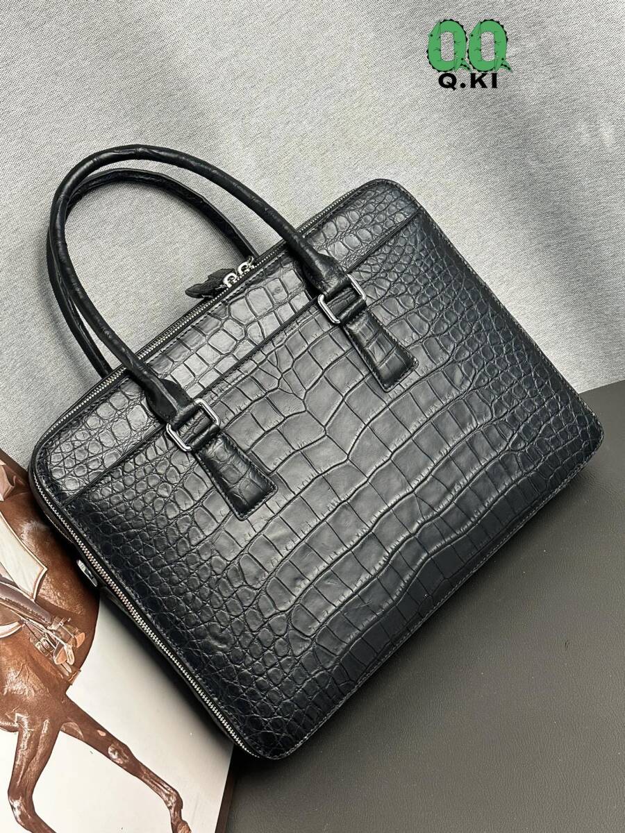 - ワニ革 本革 ビジネスバッグメンズ 2way ショルダー ハンドバッグ マット加工 クロコダイル革 ブリーフケース 出張 面接 バッグ
