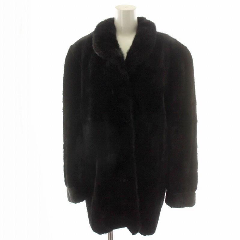 - ファーコート ミドル ハーフ ミンクファー リアルファー 毛皮 総裏地 11号 黒 ブラック /MP ■GY18 レディース