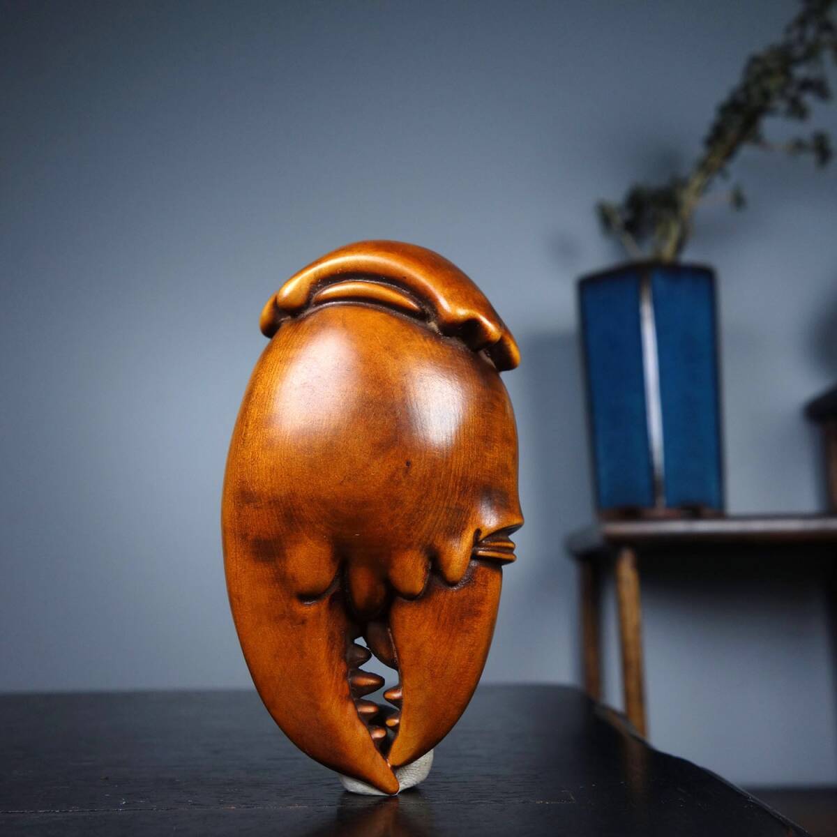 - 『館蔵珍品 黄楊木製 細密彫 招財蟹鉗 置物 賞物』稀少珍蔵品 古賞物 貴重物品 収蔵品 中国古美術 時代物 古董品