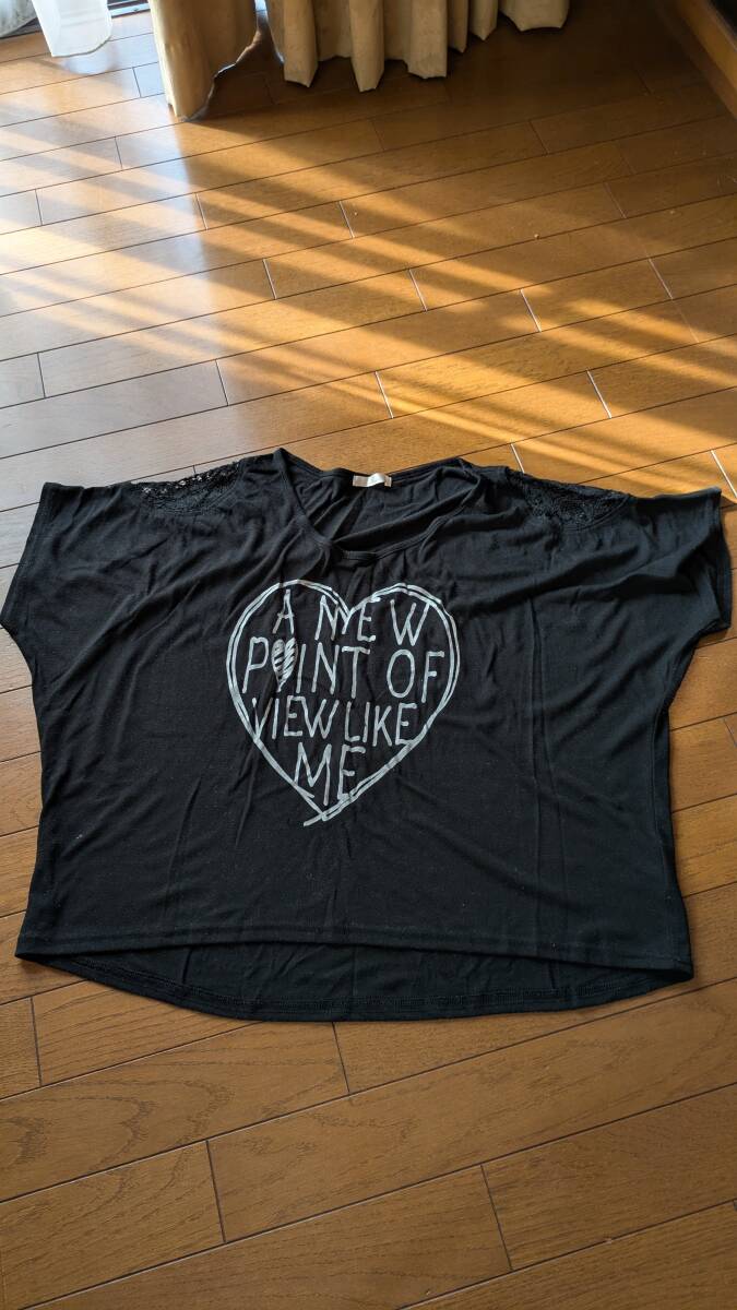- ★ロゴTシャツ ドルマリンTシャツ★Lサイズ ざっくり 丈違い 肩部レース素材