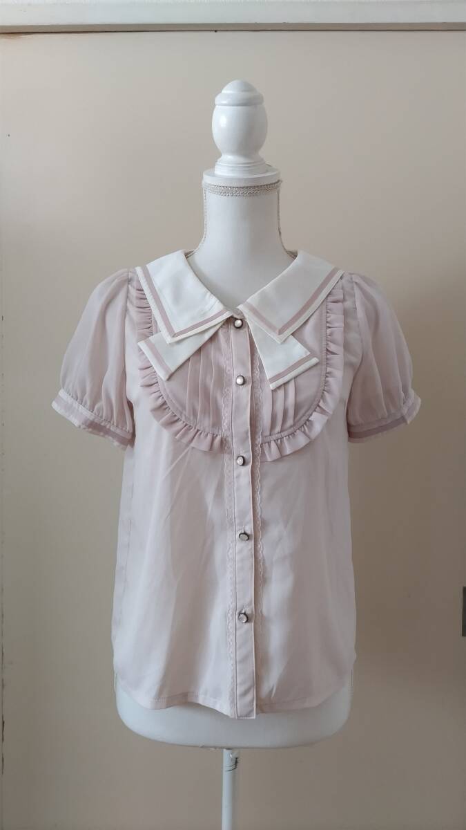 > No.2750_アクシーズファム_淡ピンクセーラー襟ロゴ刺繍半袖ブラウス