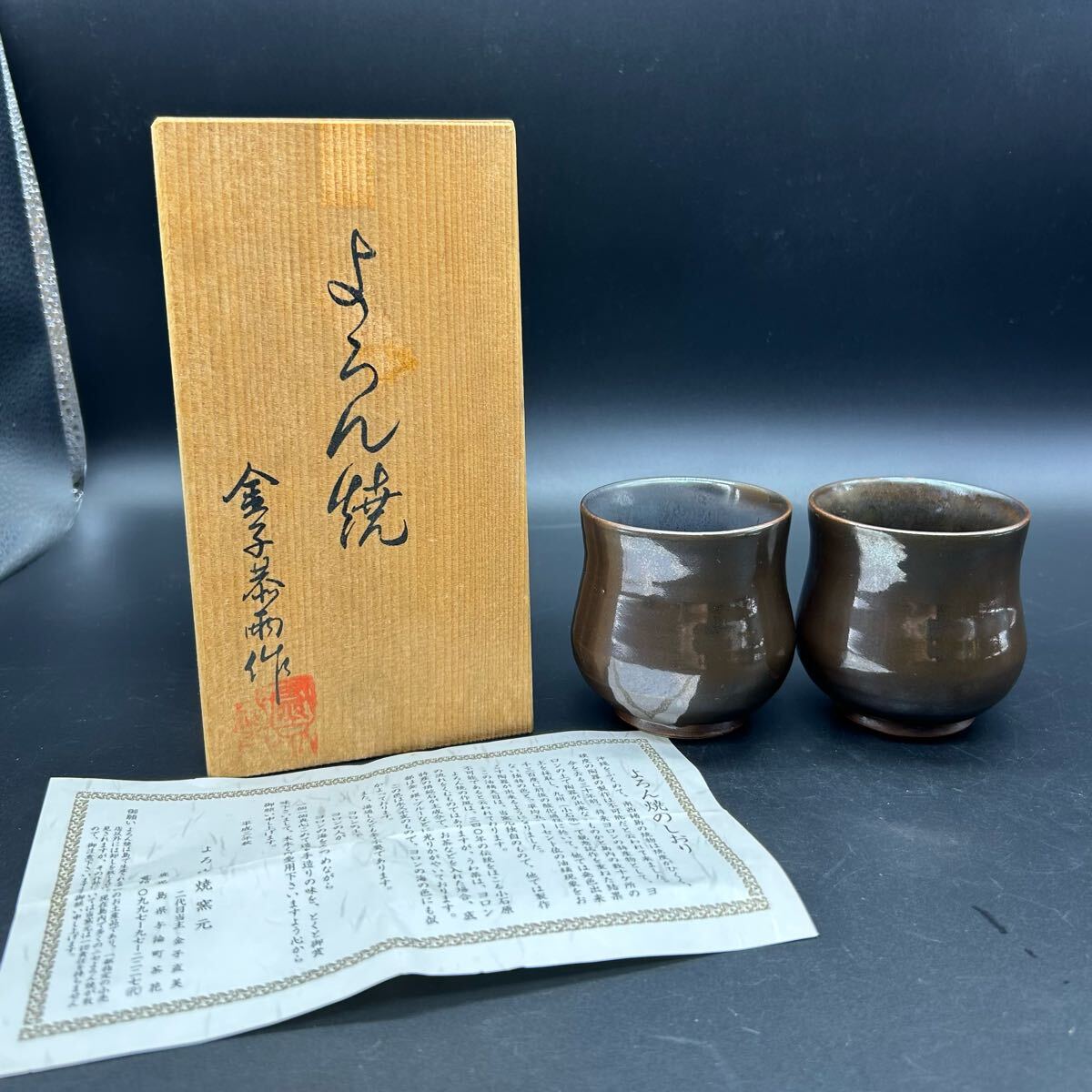 - 与論焼 よろん焼 金子恭雨 夫婦湯呑 湯飲み 湯呑み 茶器 茶道具 ヨ11