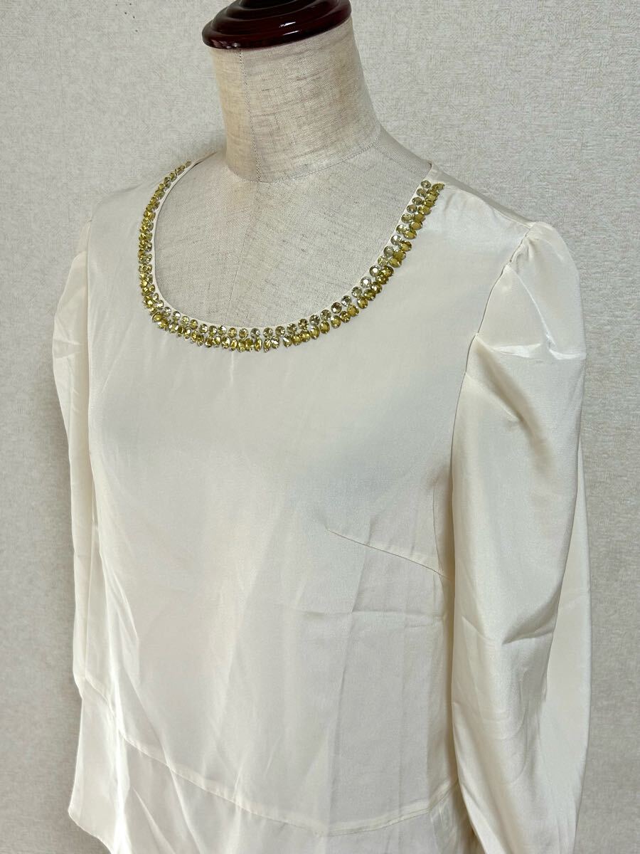 - 【レッセパッセ★Debut fiore★デビュードフィオレ】ビジュー装飾・七分袖プルオーバーブラウス・透け感・オフベージュ・38・送料180円