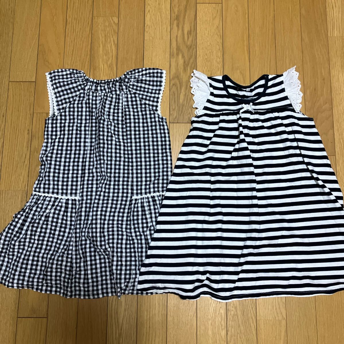 - ワンピース2枚セット チェック、ボーダー120サイズ