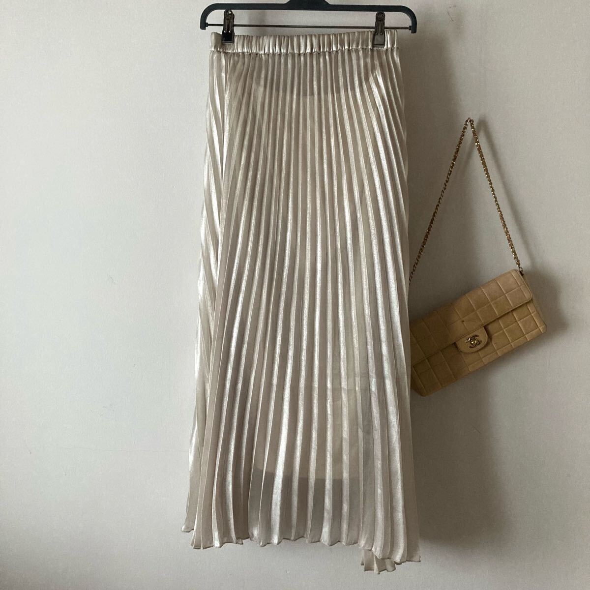 - ローリーズファーム*張り感シアー プリーツスカート*ゴールド