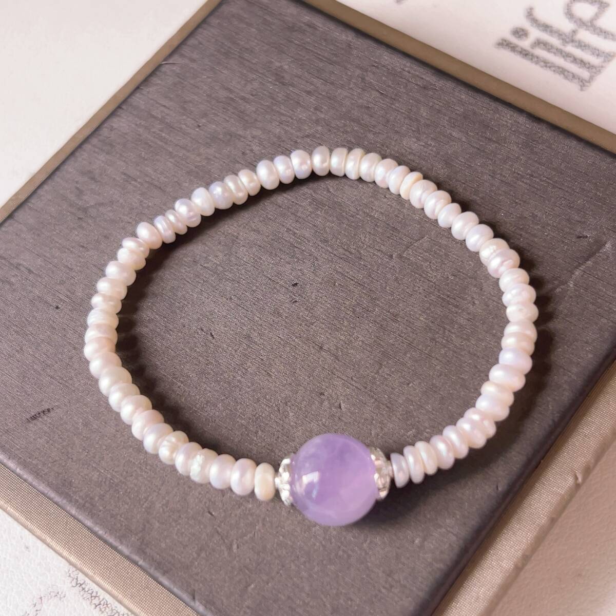 > ◇紫水晶+淡水真珠◇アメジスト◇ブレスレット◇パワーストーン◇天然石◇巾着袋付き◇プレゼントにも038B752