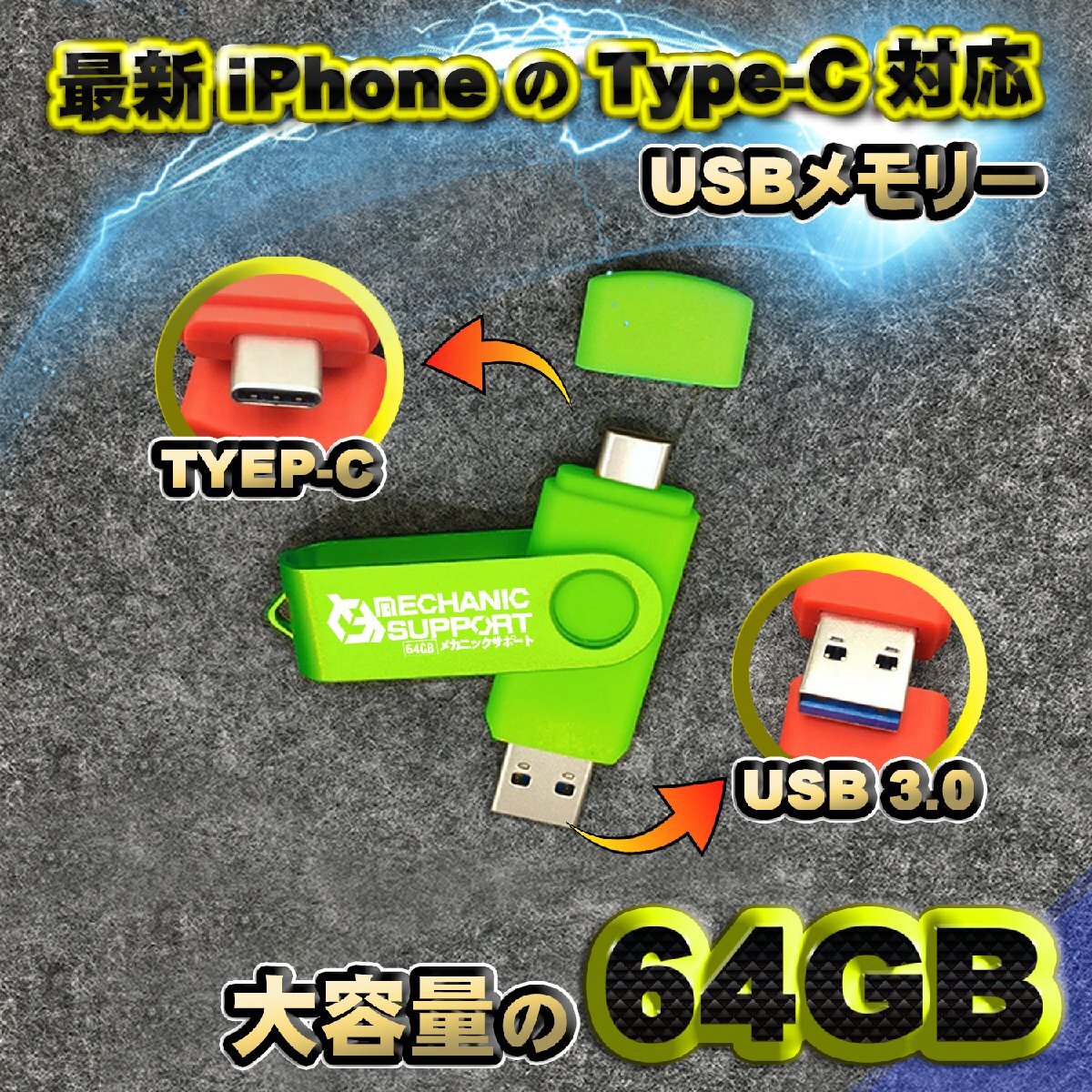 > 【最新 iPhone Type-C 対応】スマホ直接データ転送 USBメモリ 大容量の64GB フラッシュ プラグ&プレイ対応 WINDOWS MAC【グリーン】