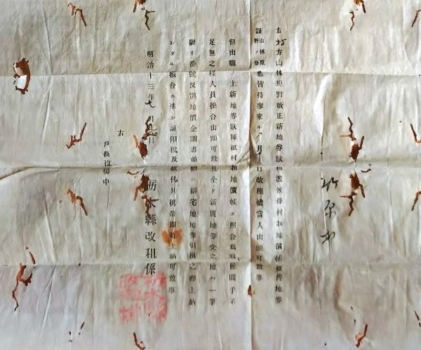- f25070306〇明治布告布達 山林原野改正新地権状 明治6年 栃木県〇和本古書古文書